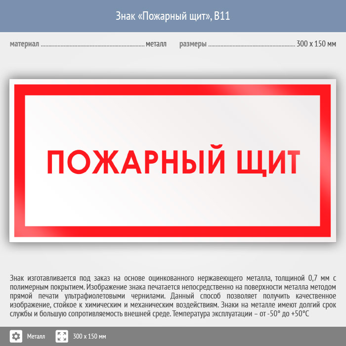 Знак «Пожарный щит», B11 (металл, 300х150 мм) в Великом Новгороде купить