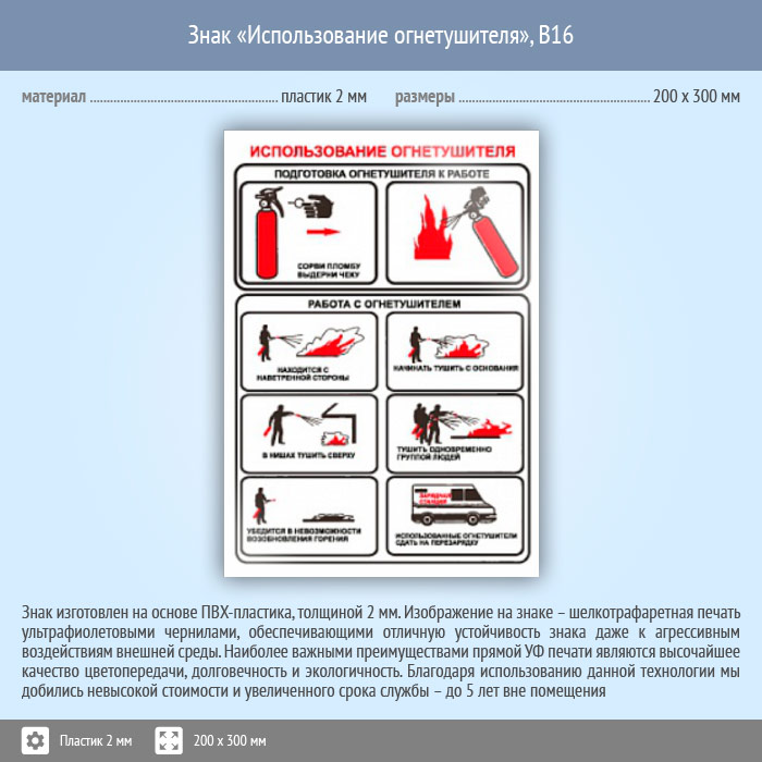 Знак «Использование огнетушителя», B16 (пластик, 200х300 мм) в Великом Новгороде купить