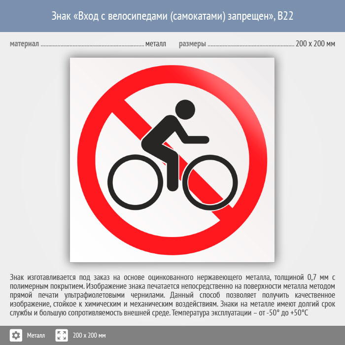 Знак «Вход с велосипедами (самокатами) запрещен», B22 (металл, 200х200 мм) в Великом Новгороде купить