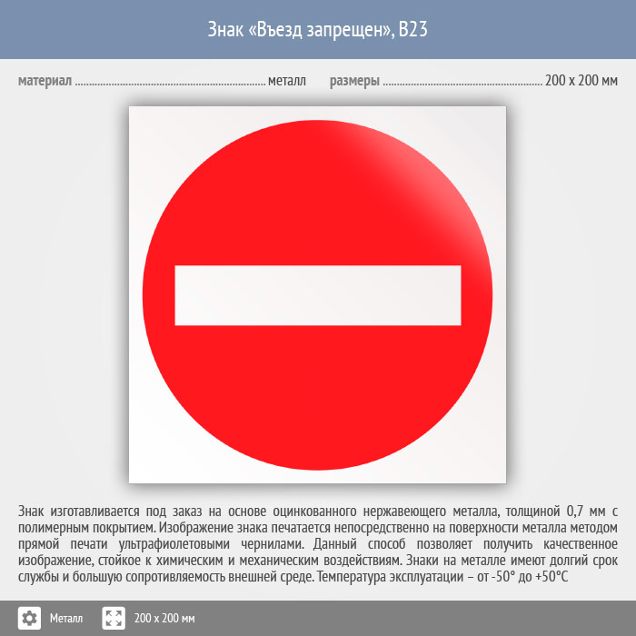 Знак «Въезд запрещен», B23 (металл, 200х200 мм) в Великом Новгороде купить