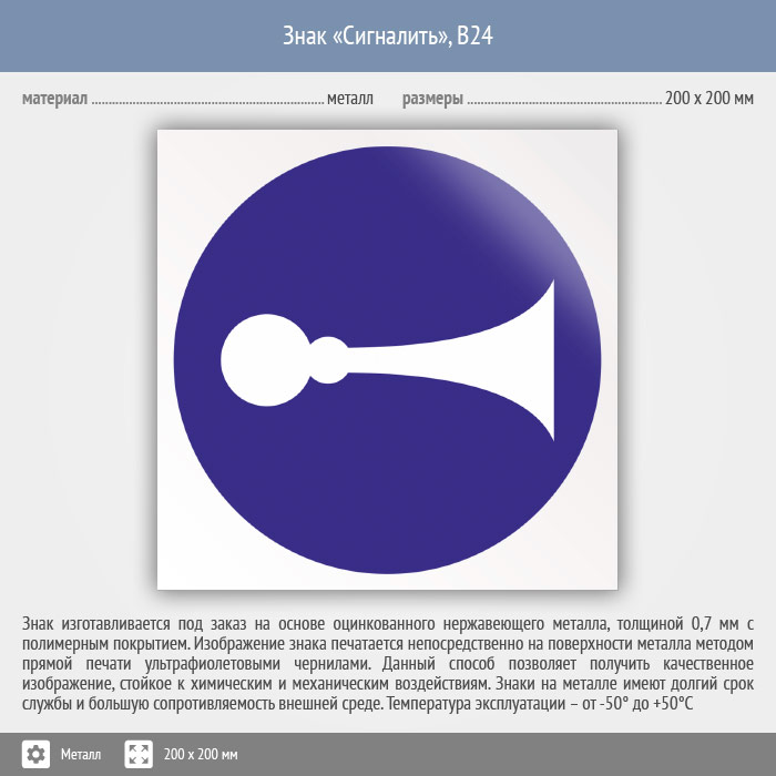 Знак «Сигналить», B24 (металл, 200х200 мм) в Великом Новгороде купить