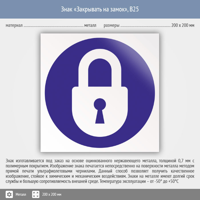 Знак «Закрывать на замок», B25 (металл, 200х200 мм) в Великом Новгороде купить