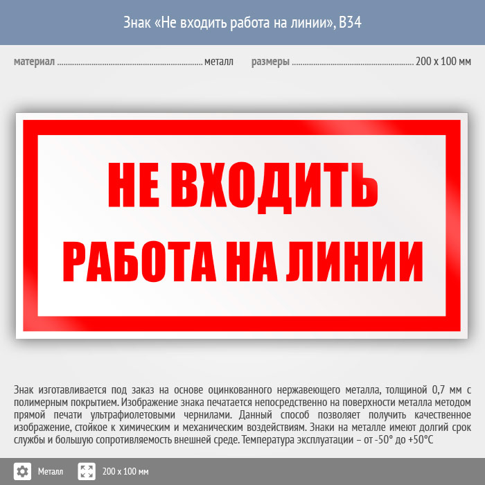 Знак «Не входить работа на линии», B34 (металл, 200х100 мм) в Великом Новгороде купить