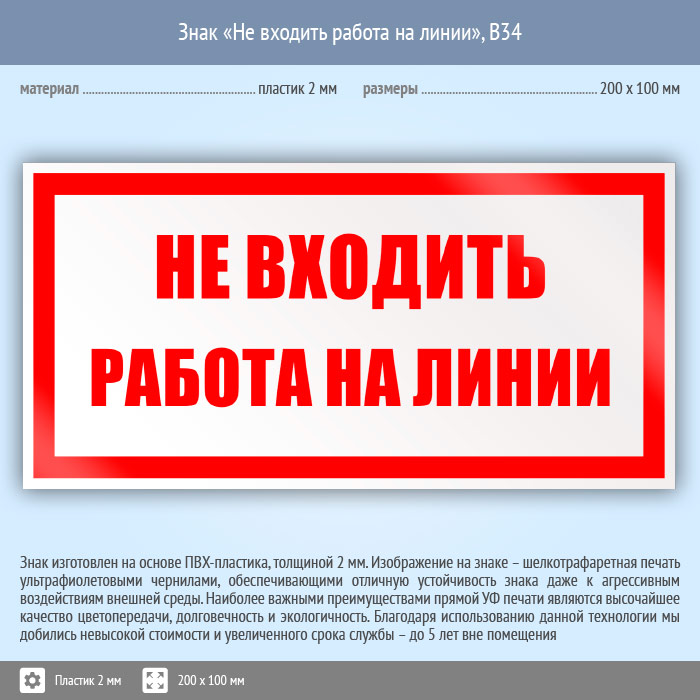 Знак «Не входить работа на линии», B34 (пластик, 200х100 мм) в Великом Новгороде купить