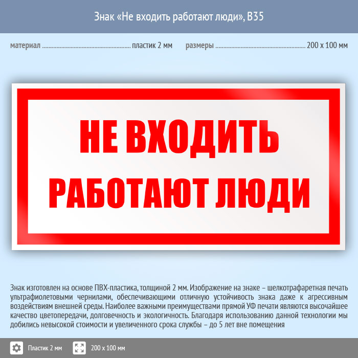 Знак «Не входить работают люди», B35 (пластик, 200х100 мм) в Великом Новгороде купить
