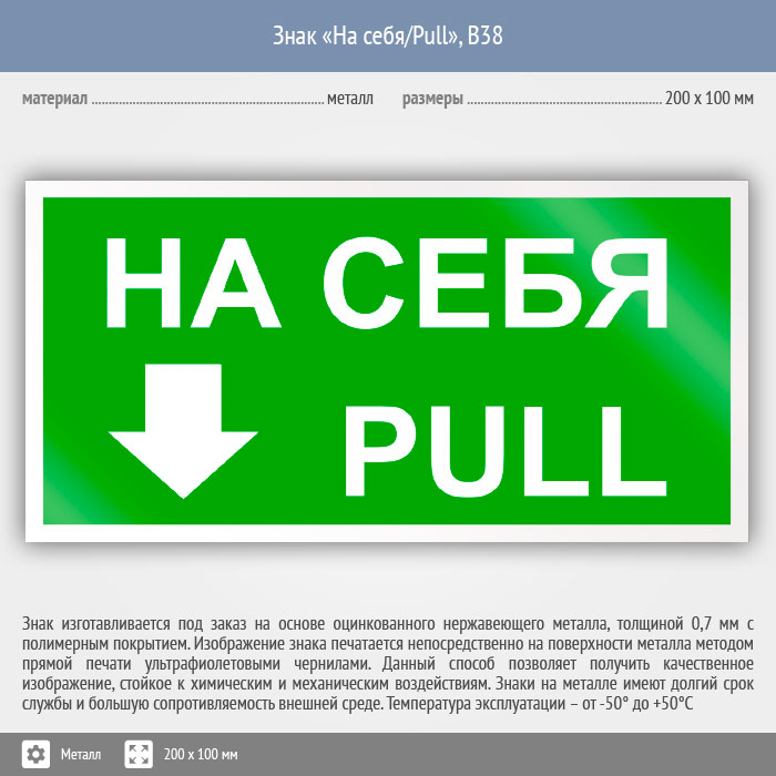 Знак «На себя/Pull», B38 (металл, 200х100 мм) в Великом Новгороде купить
