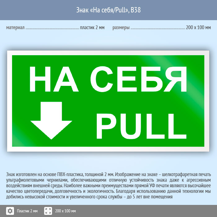 Знак «На себя/Pull», B38 (пластик, 200х100 мм) в Великом Новгороде купить
