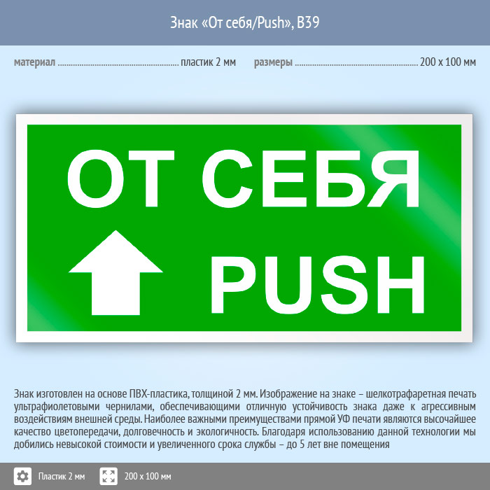 Знак «От себя/Push», B39 (пластик, 200х100 мм) в Великом Новгороде купить