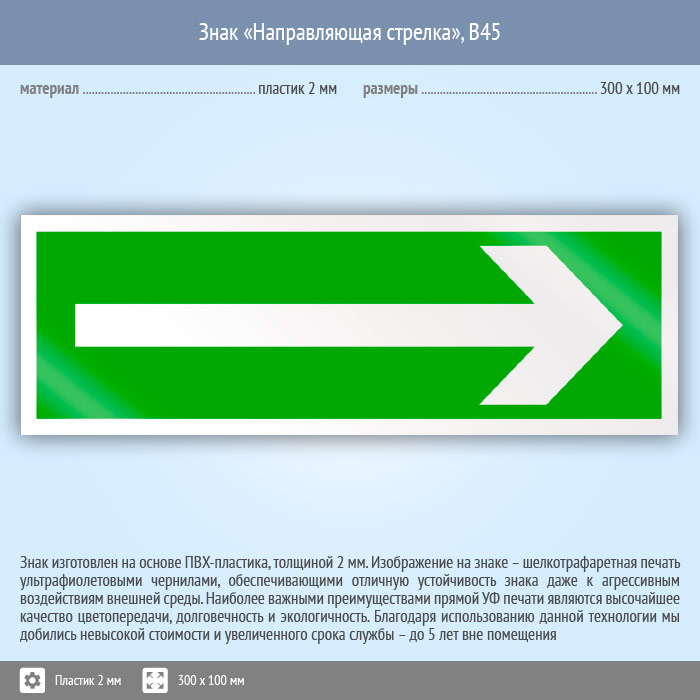 Знак «Направляющая стрелка», B45 (пластик, 300х100 мм) в Великом Новгороде купить