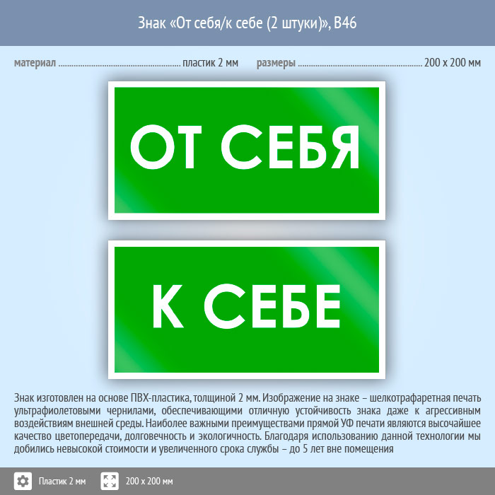 Знак «От себя/к себе», B46 (2 штуки, пластик, 200х100 мм) в Великом Новгороде купить