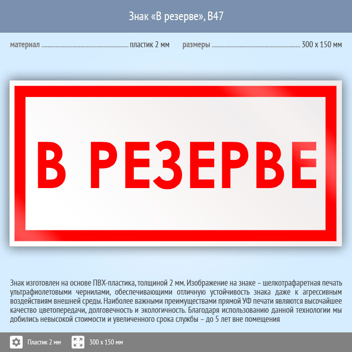 Знак «В резерве», B47 (пластик, 300х150 мм) в Великом Новгороде купить