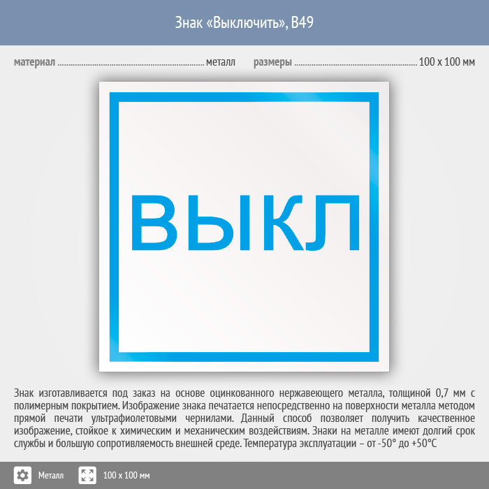 Знак «Выключить», B49 (металл, 100х100 мм) в Великом Новгороде купить