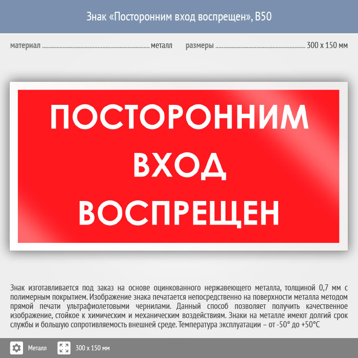 Знак «Посторонним вход воспрещен», B50 (металл, 300х150 мм) в Великом Новгороде купить