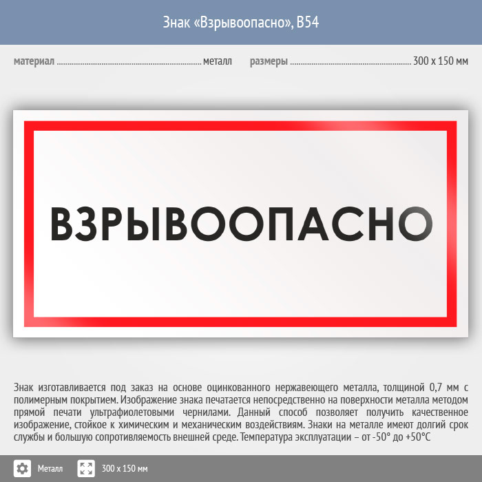 Знак «Взрывоопасно», B54 (металл, 300х150 мм) в Великом Новгороде купить