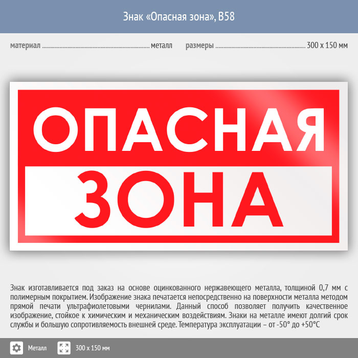 Знак «Опасная зона», B58 (металл, 300х150 мм) в Великом Новгороде купить