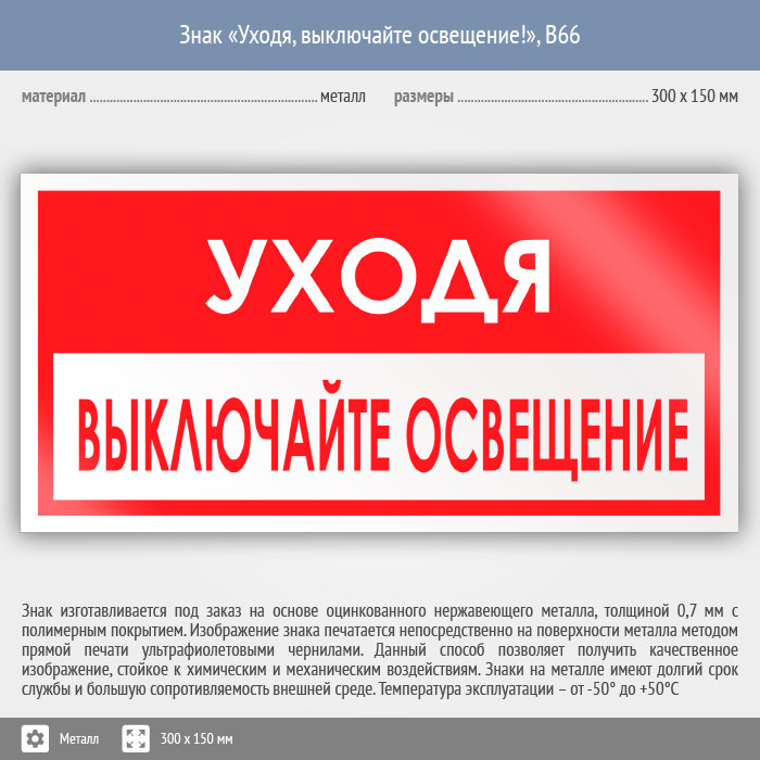 Знак «Уходя, выключайте освещение!», B66 (металл, 300х150 мм) в Великом Новгороде купить