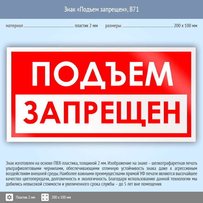 Знак «Подъем запрещен», B71 (пластик, 200х100 мм) в Великом Новгороде купить