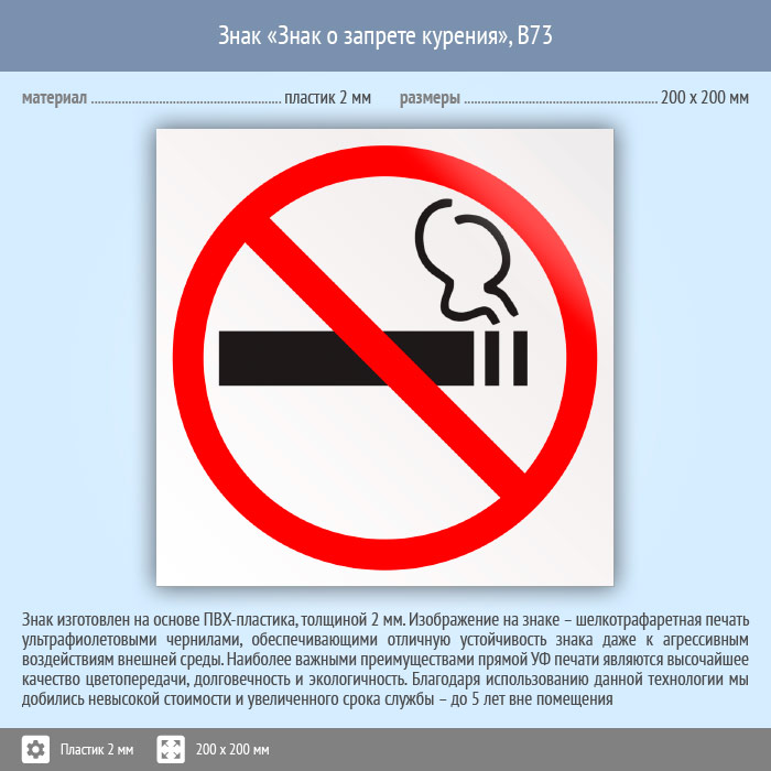 Знак «Знак о запрете курения», B73 (пластик, 200х200 мм) в Великом Новгороде купить
