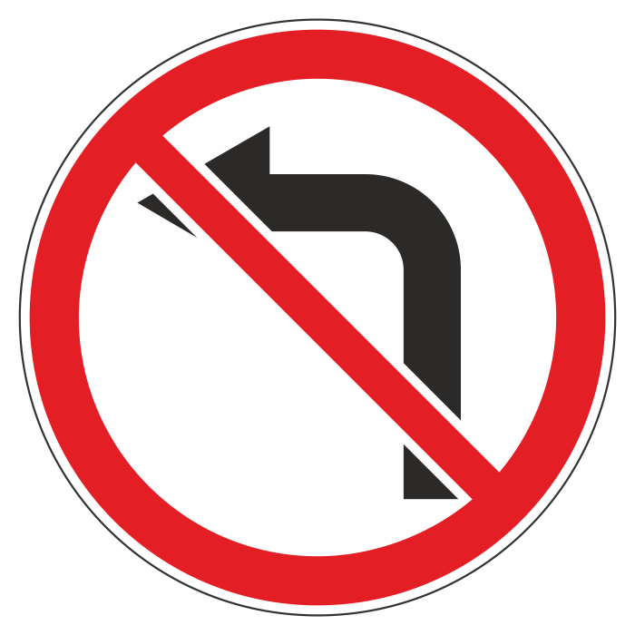 Дорожный знак 3.18.2 «Поворот налево запрещен» (металл 0,8 мм, III типоразмер: диаметр 900 мм, С/О пленка: тип А инженерная) в Великом Новгороде купить