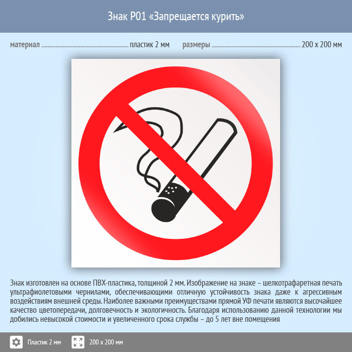 Знак P01 «Запрещается курить» (пластик, 200х200 мм) в Великом Новгороде купить