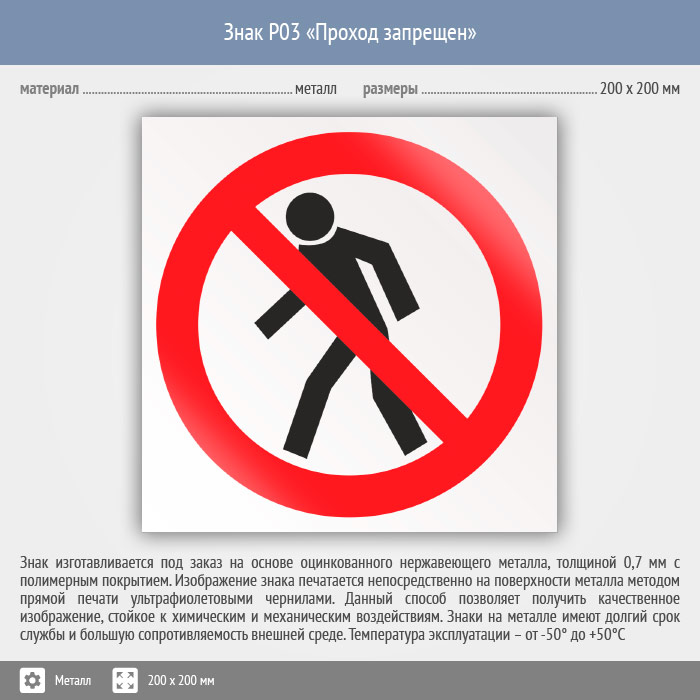 Знак P03 «Проход запрещен» (металл, 200х200 мм) в Великом Новгороде купить