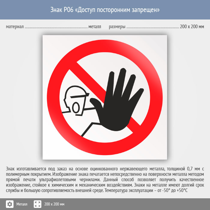 Знак P06 «Доступ посторонним запрещен» (металл, 200х200 мм) в Великом Новгороде купить