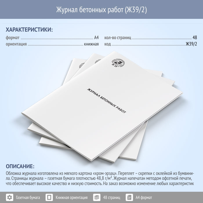 Журнал бетонных работ (48 стр., Ж39/2) в Великом Новгороде купить