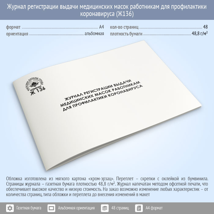 Журнал регистрации выдачи медицинских масок работникам для профилактики коронавируса (48 стр., Ж136) в Великом Новгороде купить