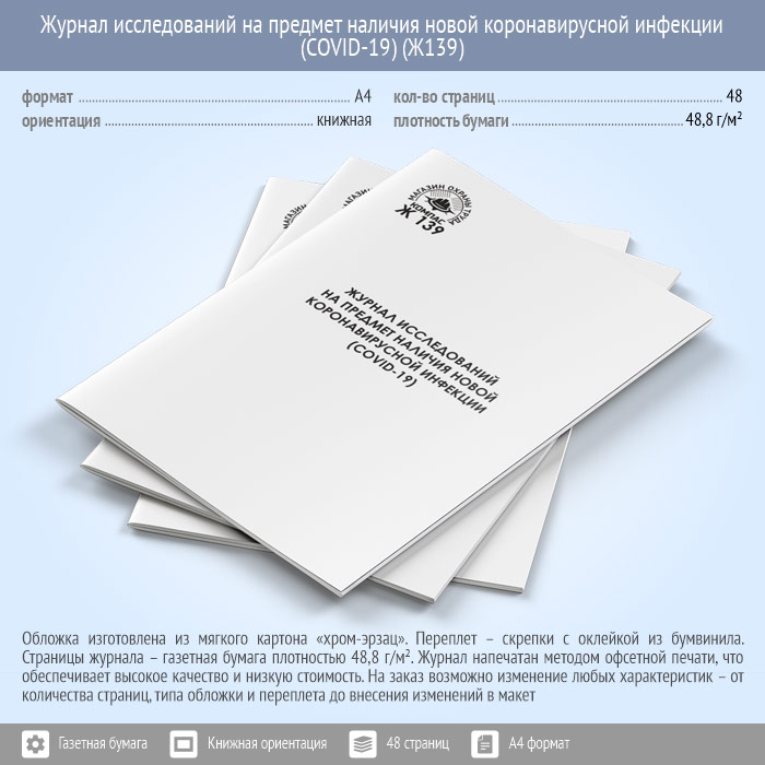 Журнал исследований на предмет наличия новой коронавирусной инфекции (COVID-19) (48 стр., Ж139) в Великом Новгороде купить