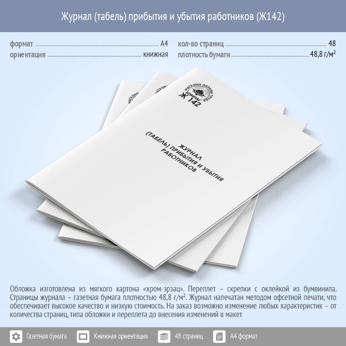Журнал (табель) прибытия и убытия работников (48 стр., Ж142) в Великом Новгороде купить
