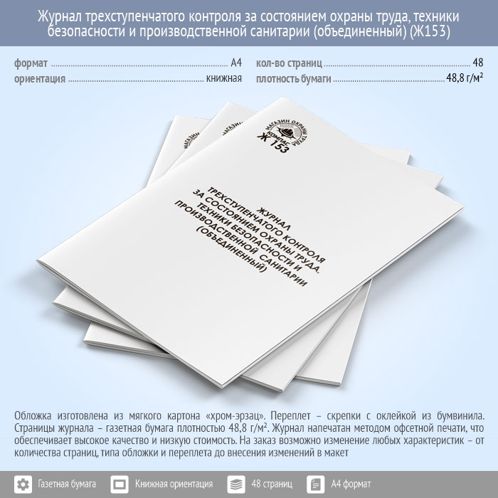 Журнал трехступенчатого контроля за состоянием охраны труда, техники безопасности и производственной санитарии (объединенный) (48 стр., Ж153) в Великом Новгороде купить
