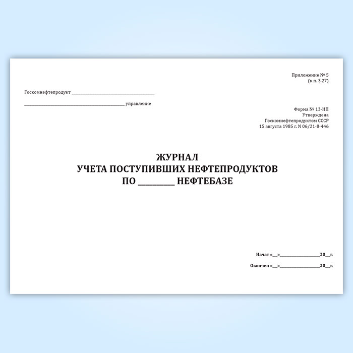 Журнал учета поступивших нефтепродуктов по нефтебазе (форма № 13-НП) в Великом Новгороде купить