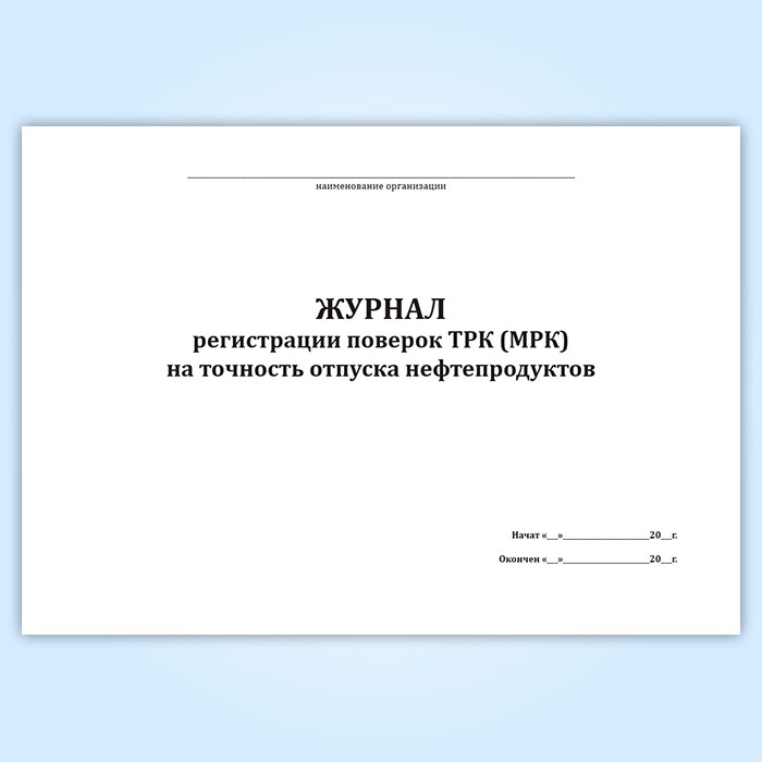 Журнал регистрации поверок ТРК (МРК) на точность отпуска нефтепродуктов в Великом Новгороде купить