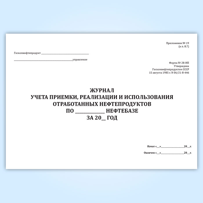 Журнал учета приемки, реализации и использования отработанных нефтепродуктов (форма № 28-НП) в Великом Новгороде купить