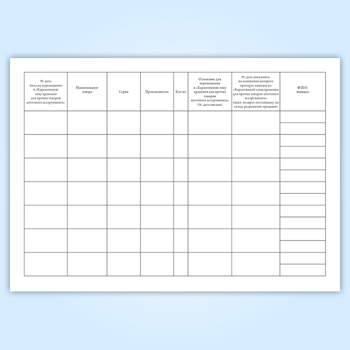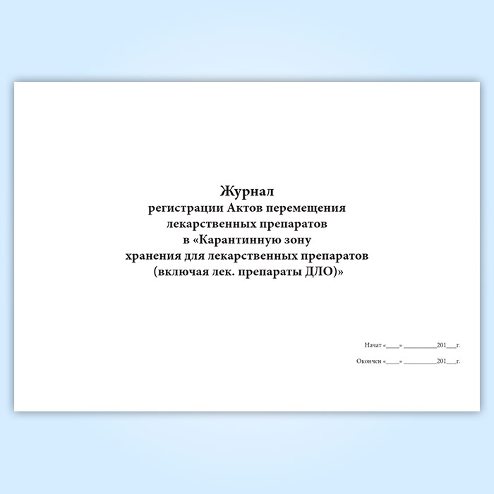 Журнал регистрации Актов перемещения лекарственных препаратов в «Карантинную зону хранения для лекарственных препаратов (включая лек. препараты ДЛО)» в Великом Новгороде купить