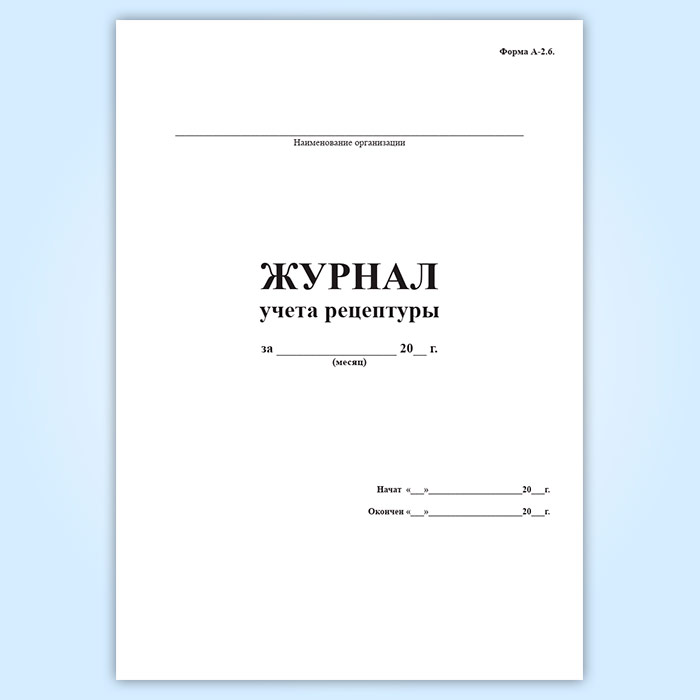 Журнал учета рецептуры (форма А-2.6) в Великом Новгороде купить