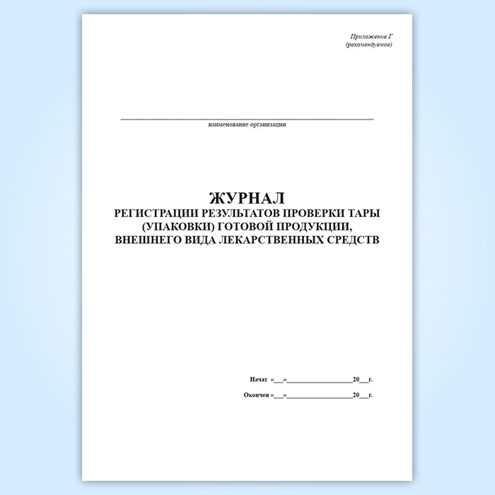 Журнал регистрации результатов проверки тары (упаковки) готовой продукции, внешнего вида лекарственных средств (форма Г) в Великом Новгороде купить