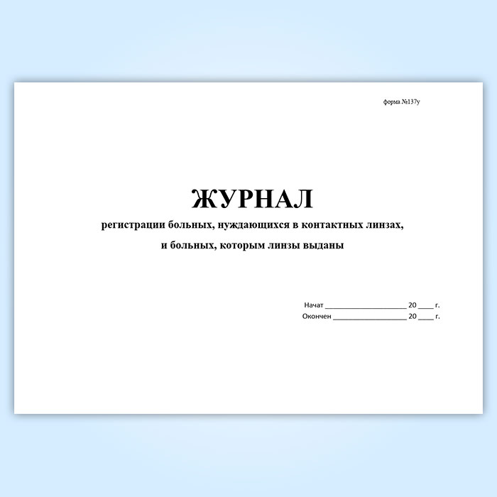Журнал регистрации больных, нуждающихся в контактных линзах, и больных, которым линзы выданы (форма № 137/у) в Великом Новгороде купить