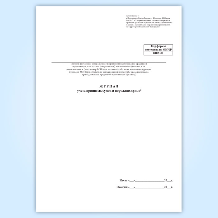 Журнал учета принятых сумок и порожних сумок (форма по ОКУД 0402301) в Великом Новгороде купить