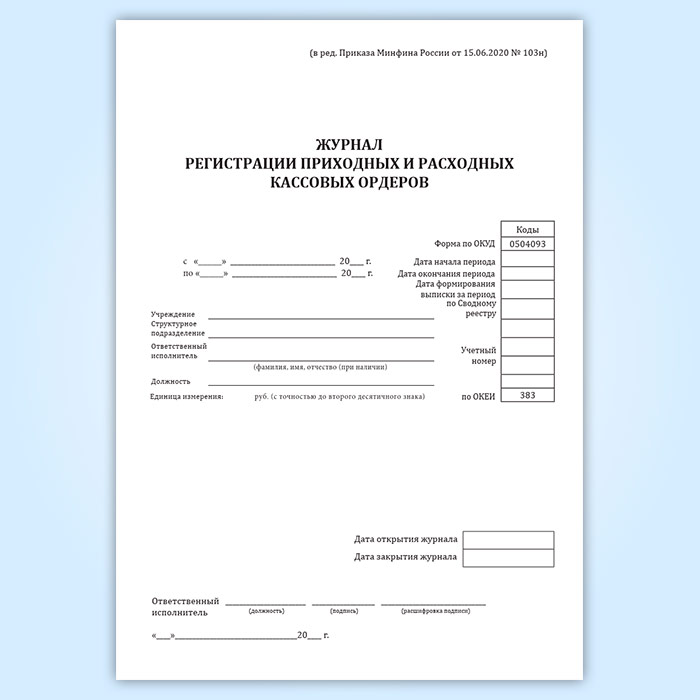 Журнал регистрации приходных и расходных кассовых ордеров (форма по ОКУД 0504093) в Великом Новгороде купить