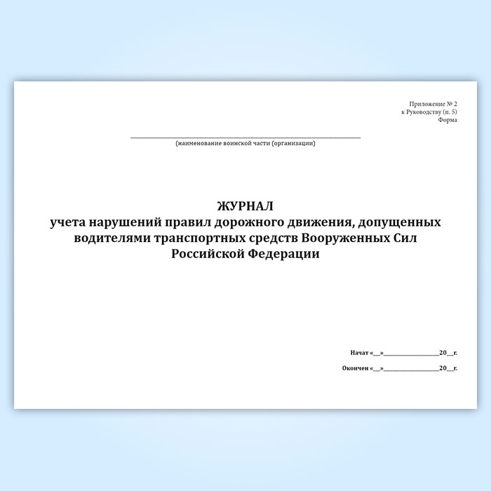 Журнал учета нарушений правил дорожного движения, допущенных водителями транспортных средств Вооруженных Сил Российской Федерации в Великом Новгороде купить