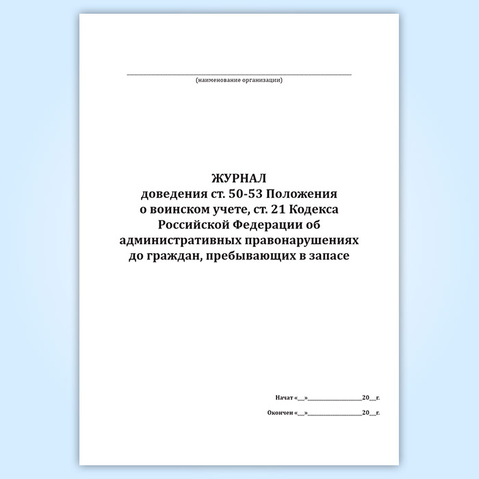 Журнал доведения ст. 50-53 Положения о воинском учете, ст. 21 Кодекса Российской Федерации об административных правонарушениях до граждан, пребывающих в запасе в Великом Новгороде купить