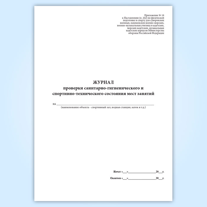 Журнал проверки санитарно-гигиенического и спортивно-технического состояния мест занятий в Великом Новгороде купить
