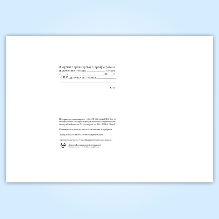 Вы получаете печатную продукцию прошнурованной и c местом для вашей печати в соответствии с действующими нормативными документами:
