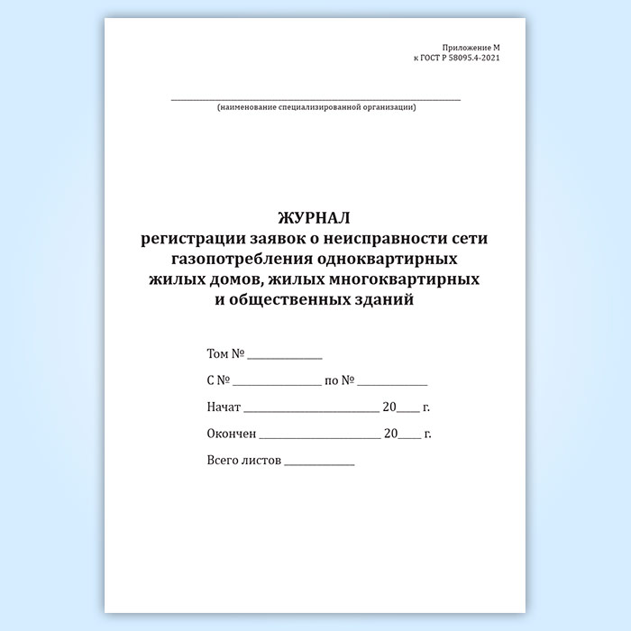 Журнал регистрации заявок о неисправности сети газопотребления одноквартирных жилых домов, жилых многоквартирных и общественных зданий в Великом Новгороде купить