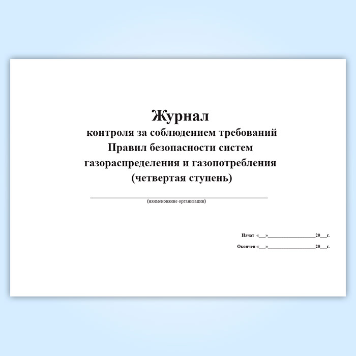 Журнал контроля за соблюдением требований Правил безопасности систем газораспределения и газопотребления (четвертая ступень) в Великом Новгороде купить