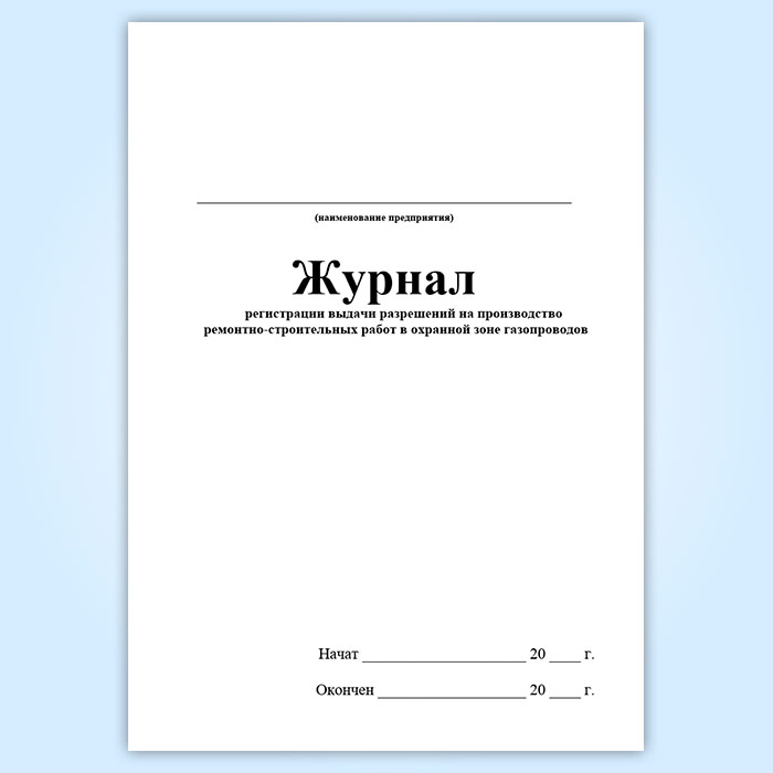 Журнал регистрации выдачи разрешений на производство ремонтно-строительных работ в охранной зоне газопроводов (ГЭГ-14) в Великом Новгороде купить