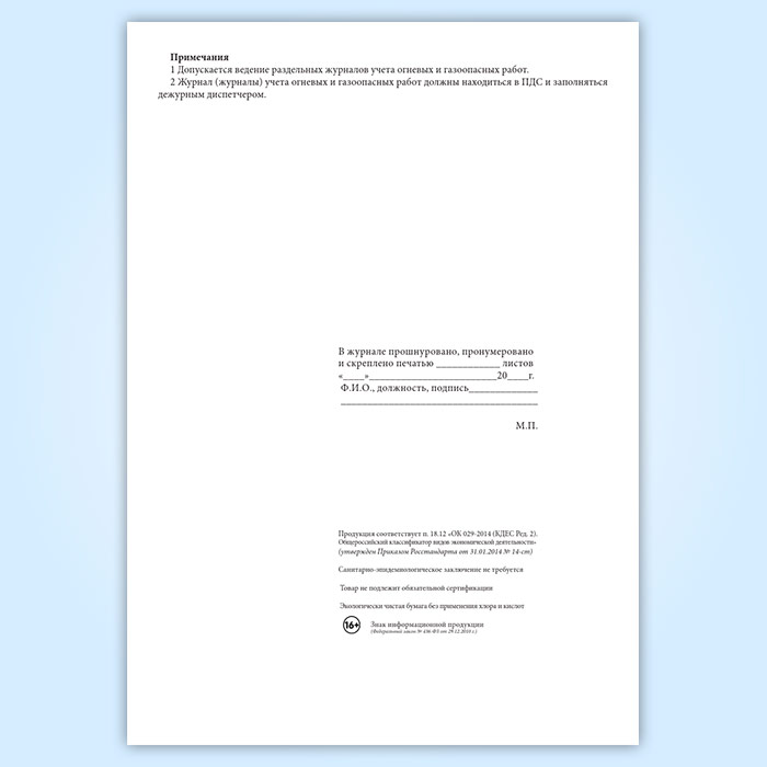 Вы получаете печатную продукцию прошнурованной и c местом для вашей печати в соответствии с действующими нормативными документами:
