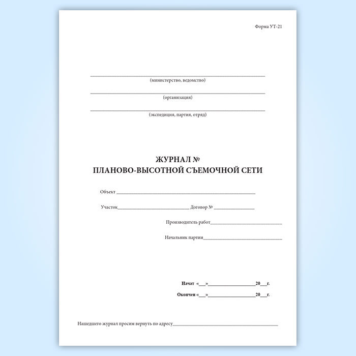 Журнал планово-высотной съемочной сети (форма УТ-21) в Великом Новгороде купить