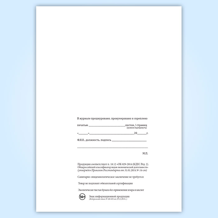 Вы получаете печатную продукцию прошнурованной и c местом для вашей печати в соответствии с действующими нормативными документами: